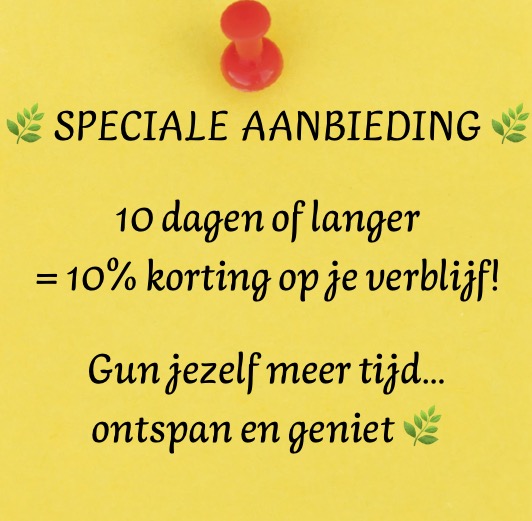 Bij annulering van meer dan 6 weken voor aankomst vervalt jullie aanbetaling. Tussen 6 en 4 weken voor aankomst ontvangen jullie 50% van de totale verblijfssom retour. Wanneer jullie de reservering willen annuleren binnen 4 weken voor aankomst vervalt de hele verblijfssom.